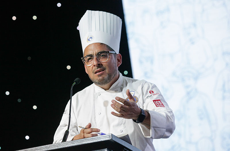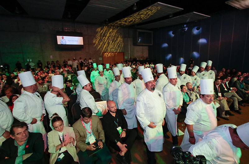 En su primer discurso el Presidente de Les Toques Blanches, Chef Patricio Qüense, explicó el concepto “En masa” que la asociación definió este año para ofrecer su experiencia gastronómica a todos los asistentes a la Ceremonia Anual, para lo cual hizo una invitación a toda la industria enogastronómica y del turismo: “La única manera de elevar el estándar de la gastronomía chilena es si trabajamos En Masa con todos nuestros miembros, compartiendo conocimiento, oportunidades y responsabilidades.